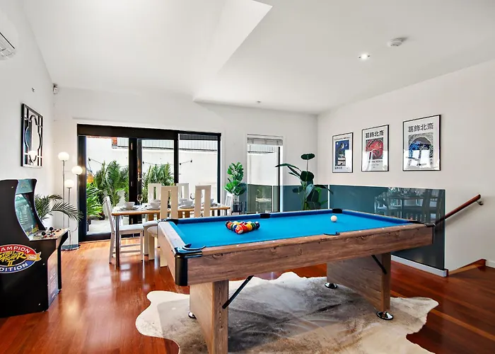 メルボルン3 Story Zen Japanese Richmond Townhouse,Pool Tableアパートメントはロイヤル植物園から2.1キロメートルの距離で、メルボルン・クリケット・グラウンドから自動車で5分以内の場所にあります。 このアパートではWi-Fiと無料の専用駐車場も利用できます。